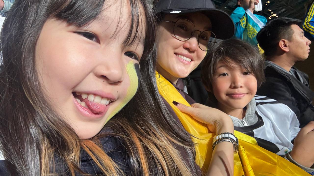 Поход этих троих на матч Реал Мадрид - Кайрат стоил 750 000 тенге. Сын прямо сильно болеет футболом.
